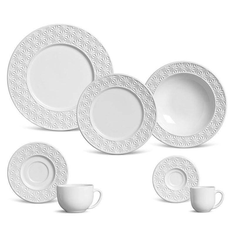 APARELHO DE JANTAR BRANCO POPPY MANISH 42 PEÇAS