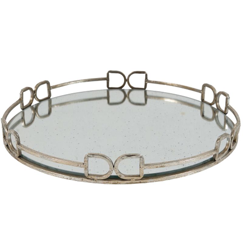 Bandeja Decor Redonda Espelhada Grande Em Metal