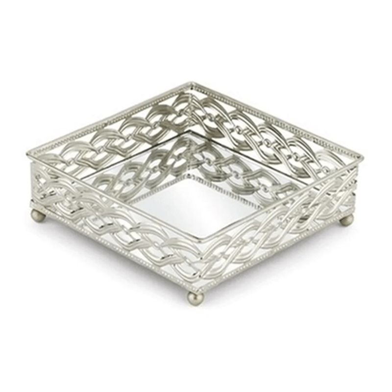 Bandeja Decorativa Francesa Luxo Quadrada Prata Jolitex