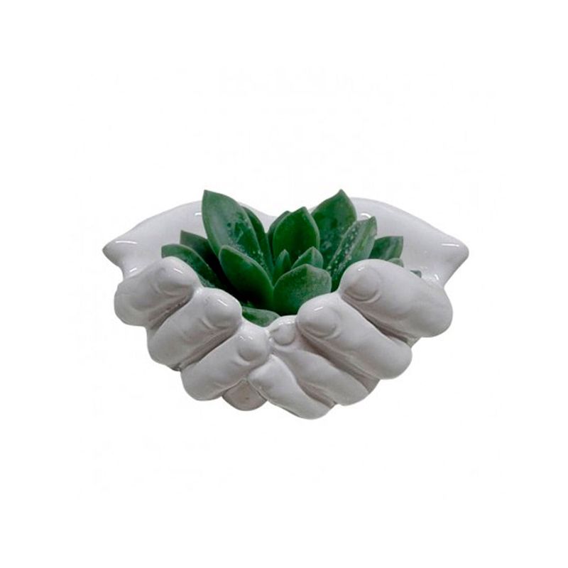 CACHEPOT DE CERÂMICA MÃOS ABERTAS BRANCO PEQUENO