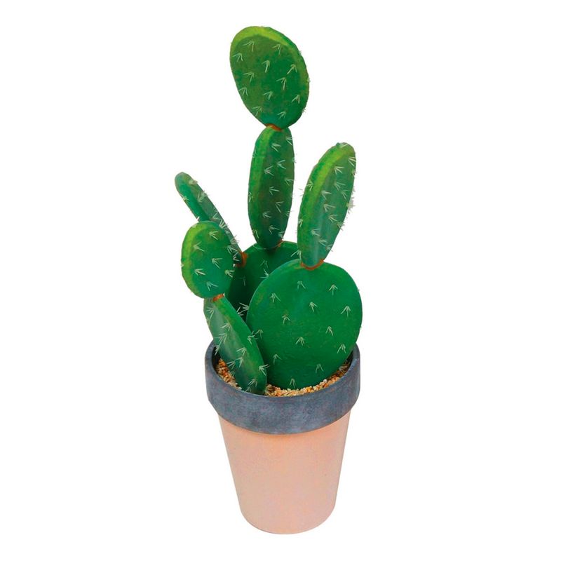 Cacto Decorativo Em Plastico E Ceramica Bege E Cinza 16x49cm