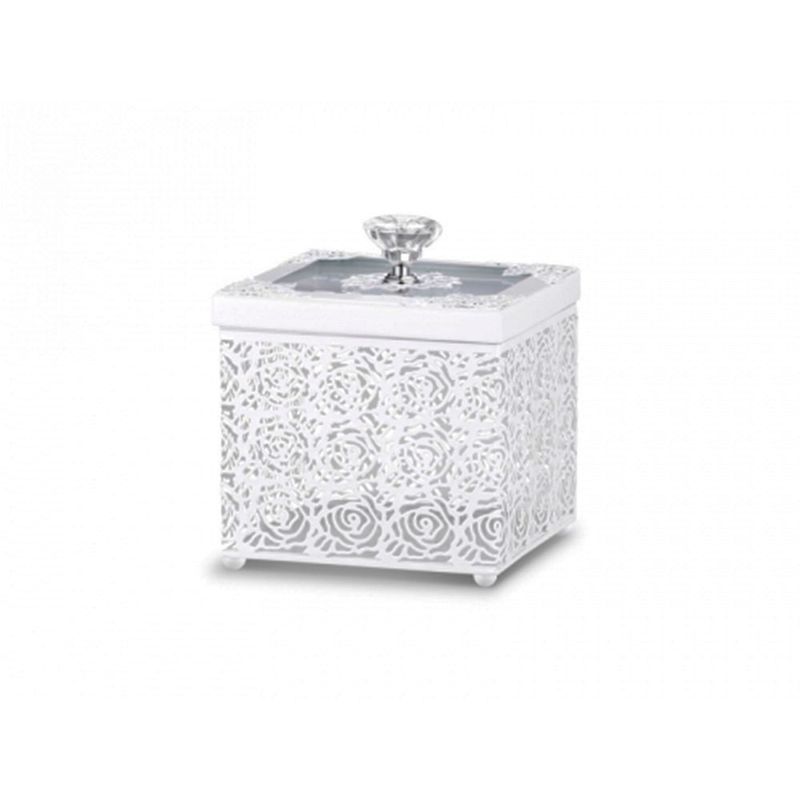 CAIXA BRANCA RENDADA DE METAL ESMALTADO 11X13CM