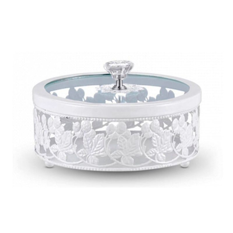 CAIXA BRANCA RENDADA DE METAL ESMALTADO 16X9CM