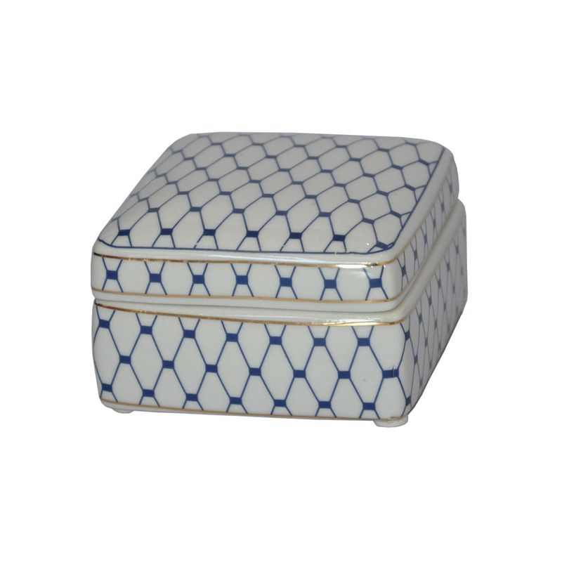 CAIXA DE CERÂMICA QUADRADA PEQUENA COM DETALHES FRISADOS EM DOURADO