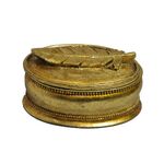 CAIXA DECORATIVA DOURADA EM MDF OVAL COM DETALHE FOLHA