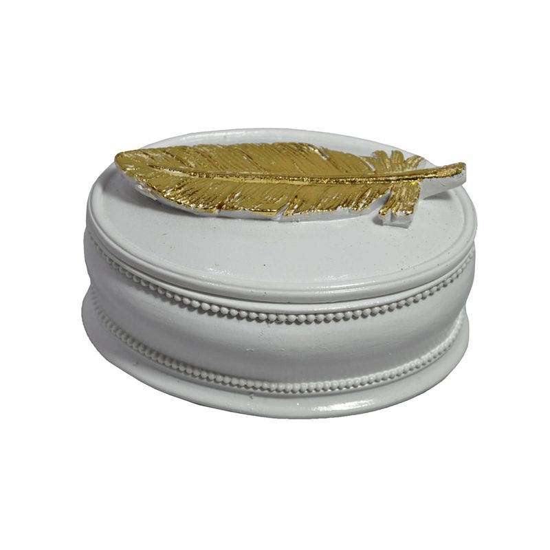 CAIXA EM MDF OVAL DECORATIVA BRANCA FOLHA DOURADA