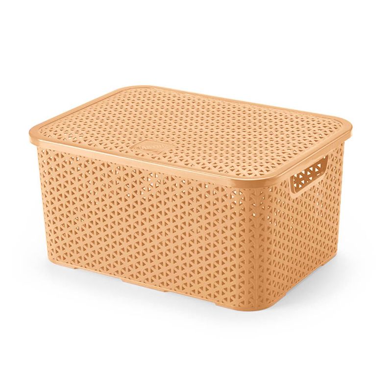 CAIXA ORGANIZADORA COM TAMPA MOSAICO 16L BEGE