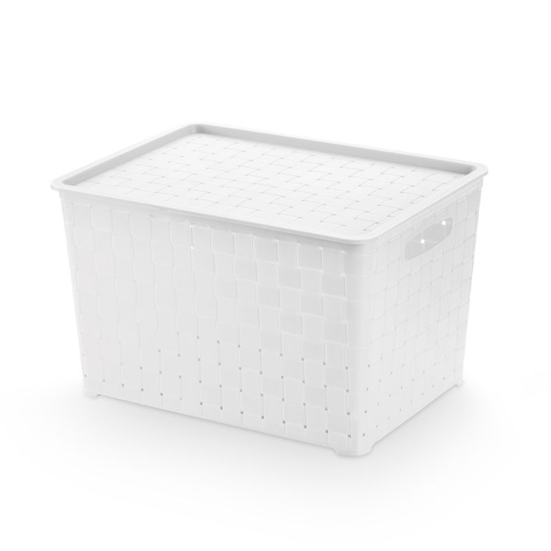 Caixa Organizadora Quadriculada Com Tampa Branca 22 Litros