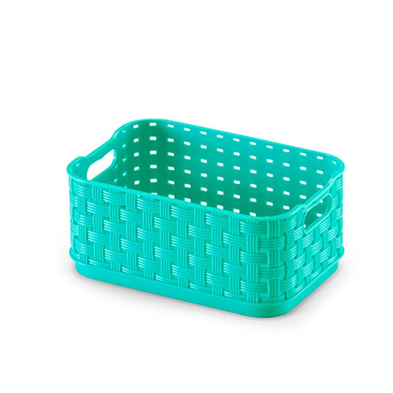 Caixa Plastica Com Alça n 2 Rattan 1,74l Azul Tiffany Arthi
