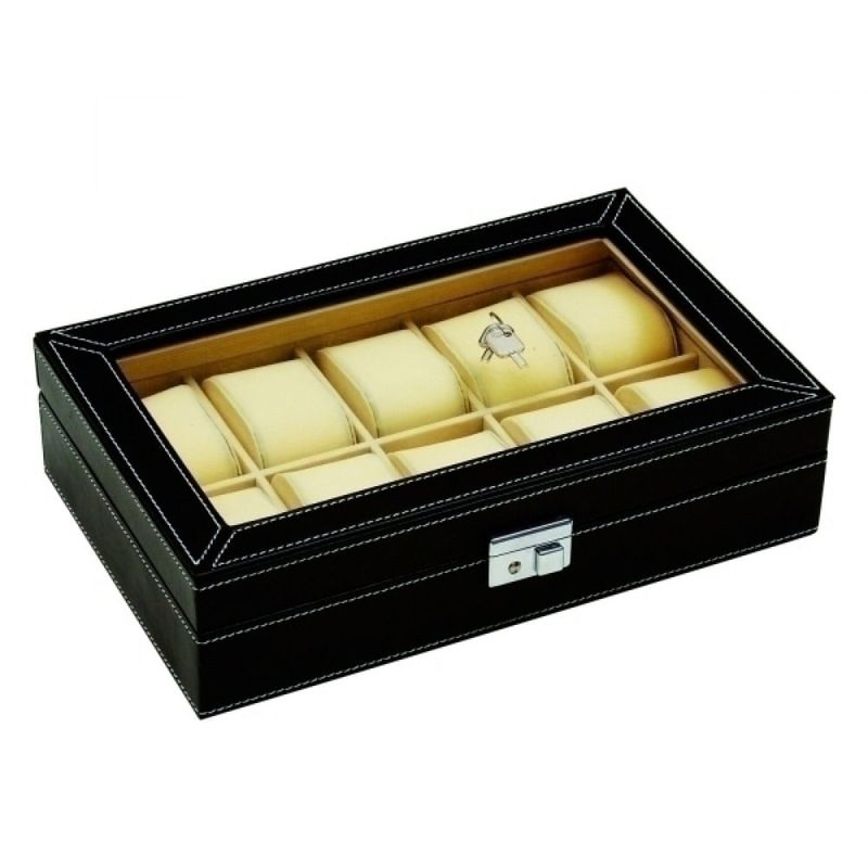 Caixa Porta Relógios De Couro Sintético Preto 32cm