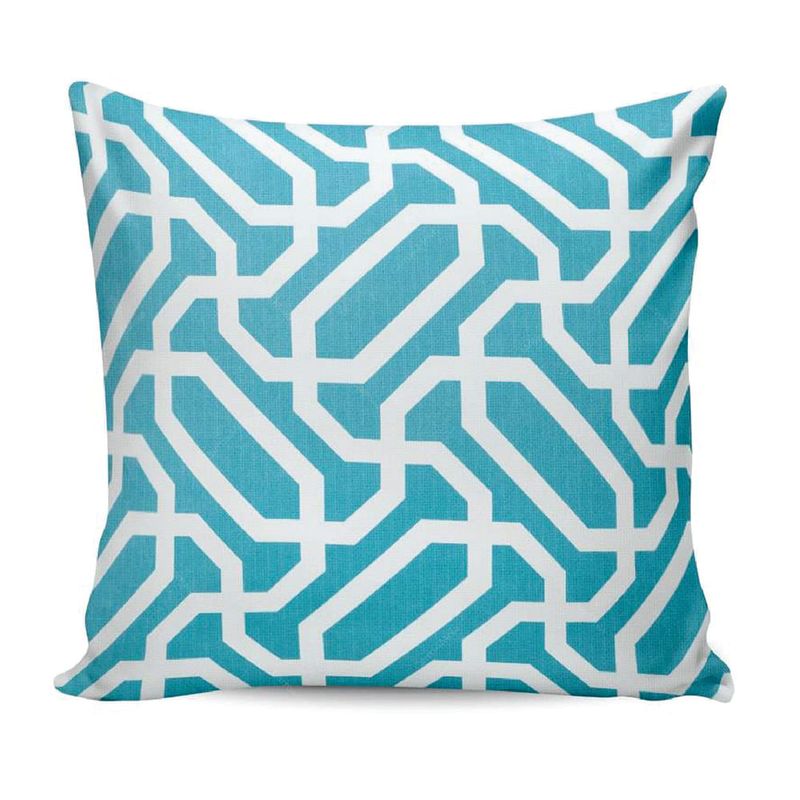 CAPA DE ALMOFADA AZUL TURQUESA DESENHO GEOMÉTRICO BRANCO 45X45CM