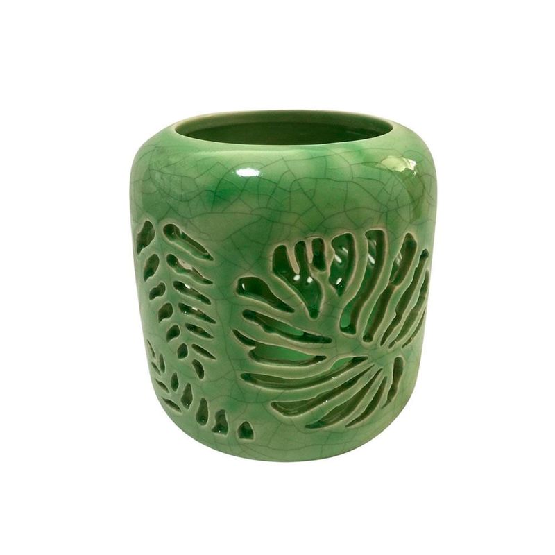 Castiçal De Ceramica Adam Leaves Verde
