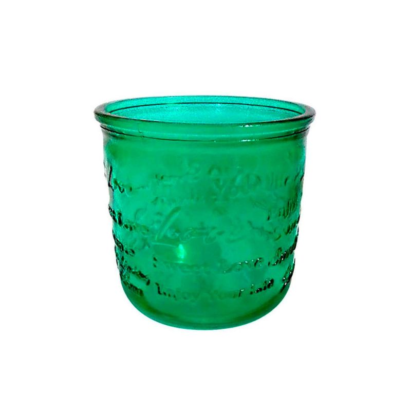 Castiçal De Vidro Embossed Letters Verde