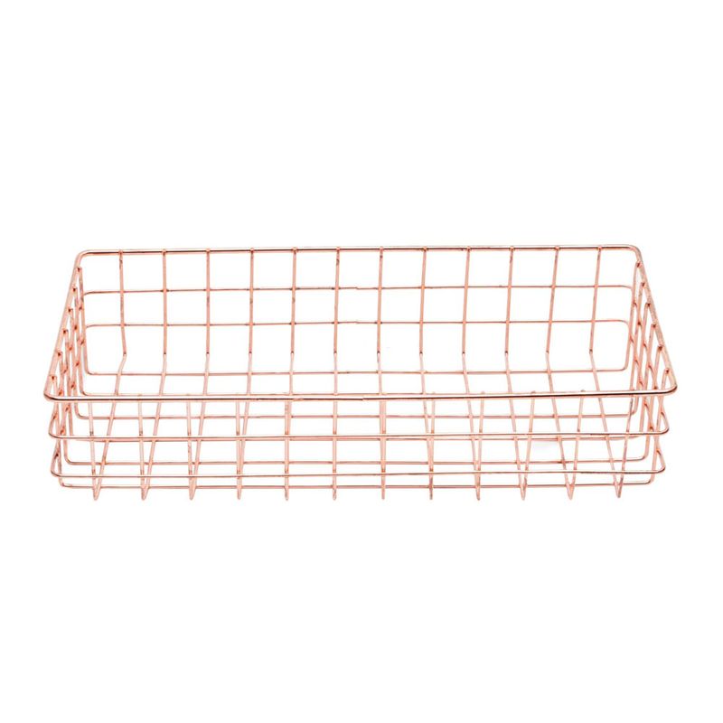 Cesta Copper Wire Retangular De Metal Cor Cobre Grande