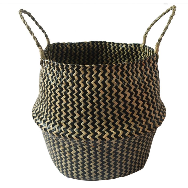 Cesto Com Alças Em Rattan Preto E Bege D31cm X 27cm