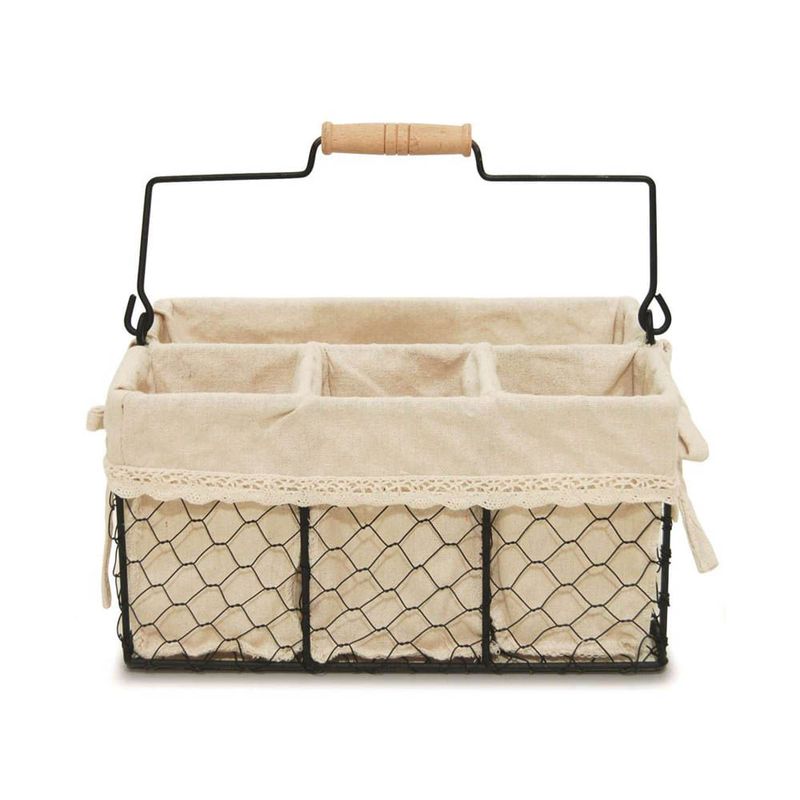 CESTO RETANGULAR ARAMADO C/ 4 DIVISÕES E FORRO DE TECIDO 27X15X14CM
