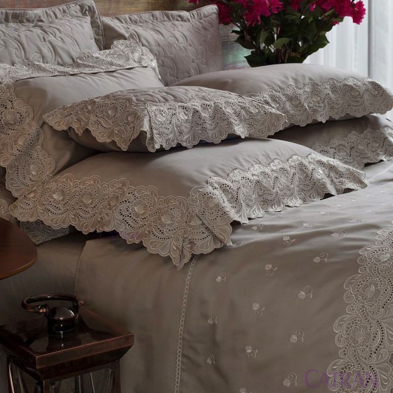 Cobre Leito King Noble 3 Peças Cinza E Cru T-3318
