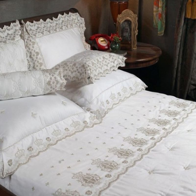 Cobre Leito King Sa-Ribeiro 3 Peças Branca E Bege T-3329