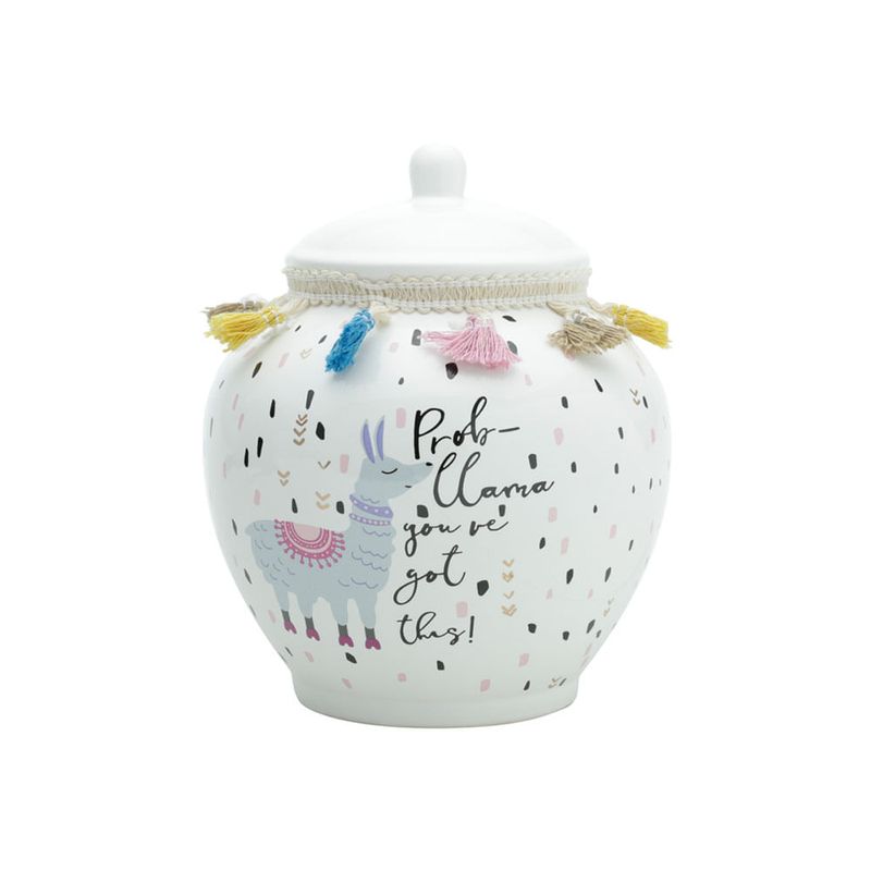Cofre Cerâmica Big Pot Lhama Colorido 15x15x18cm
