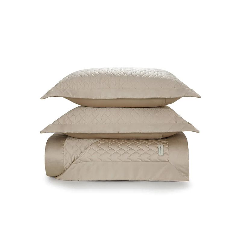 Colcha Super King Trussardi 2 Porta Travesseiros 300 Fios Cetim Spiazzo Nocciola