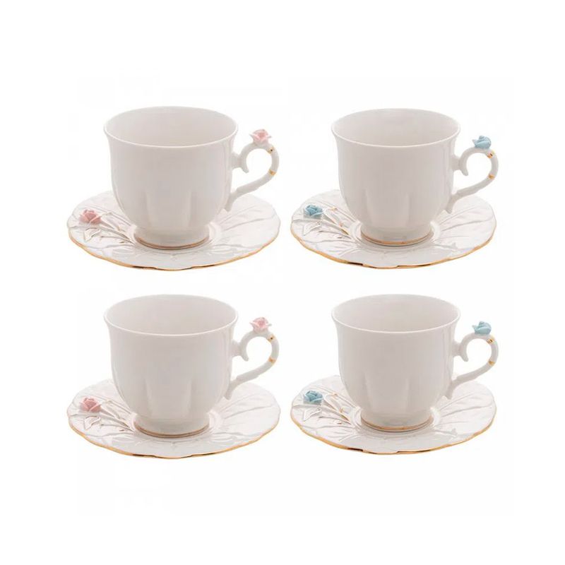 Conjunto 4 Xícaras de Chá de Porcelana 200ml Flower Wolff