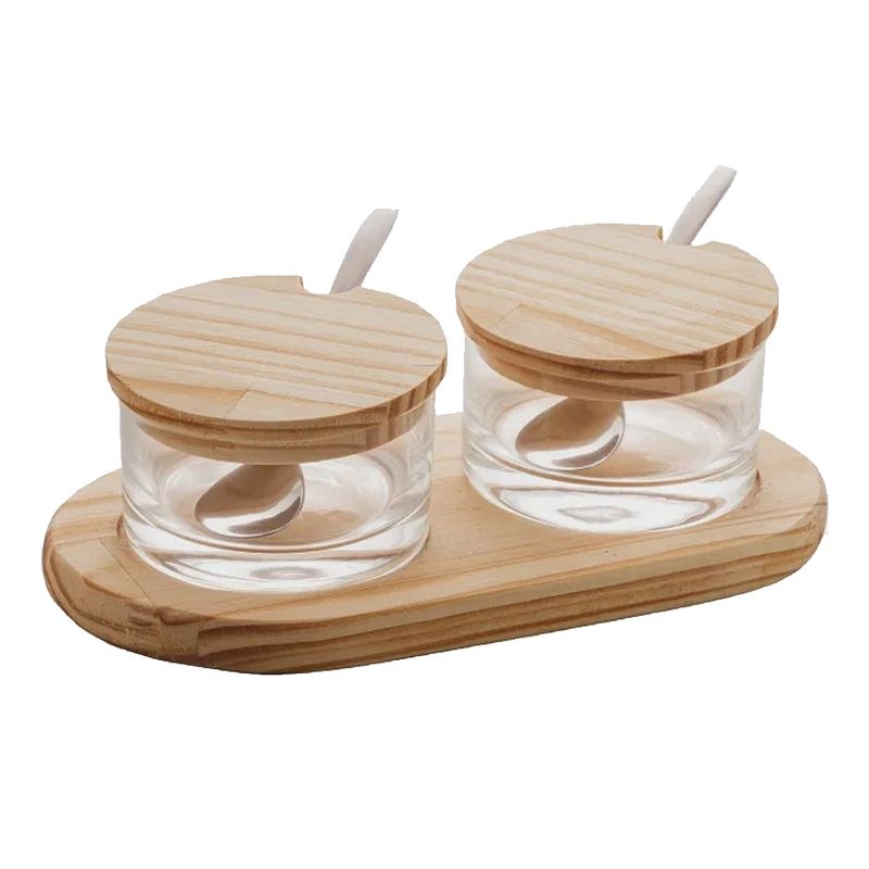 Conjunto Com 2 Potes Açucareiros Com Suporte De Madeira Pinus Wolf