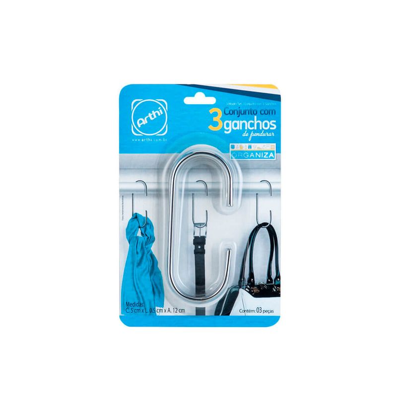 Conjunto Com 3 Ganchos Cromados
