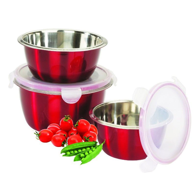 Conjunto Com 3 Potes Herméticos De Inox Vermelho