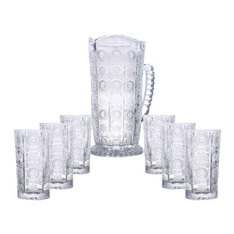 CONJUNTO COM 6 COPOS E UMA JARRA DE VIDRO STARRY