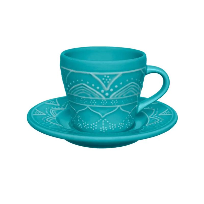 CONJUNTO COM 6 XÍCARAS DE CHÁ SERENA TURQUESA 220ML COM PIRES