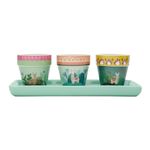 CONJUNTO DE VASOS COM BANDEJA CERÂMICA MEXICAN LHAMAS 4 PEÇAS