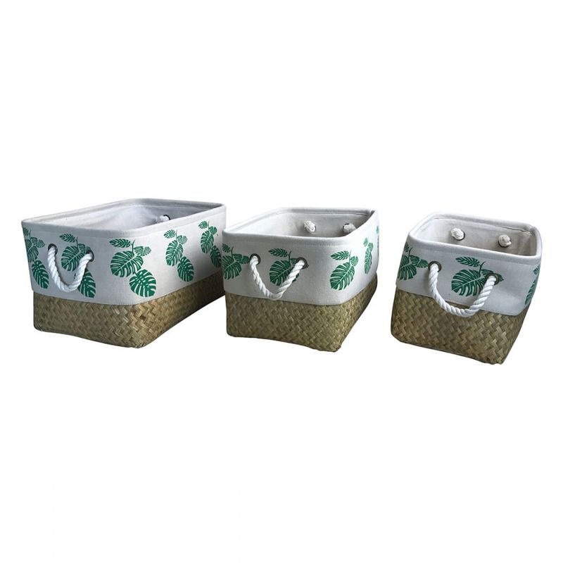 Conjunto De Cestos De Rattan E Tecido Estampado 3 Pecas Quadrado