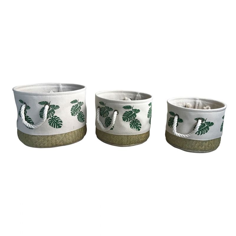 Conjunto De Cestos De Rattan E Tecido Estampado 3 Pecas Redondo