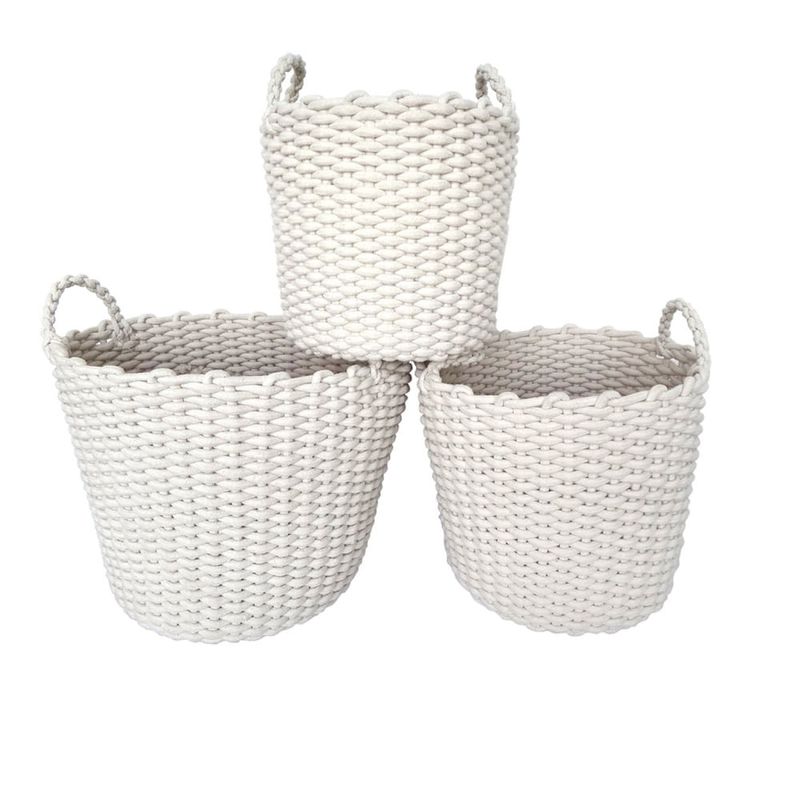 CONJUNTO DE CESTOS EM CORDA BRANCO 3 PEÇAS