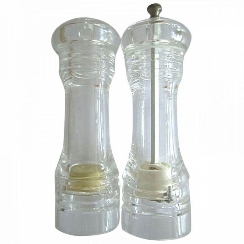 CONJUNTO MOEDOR DE PIMENTA E SALEIRO DE ACRÍLICO TRANSPARENTE