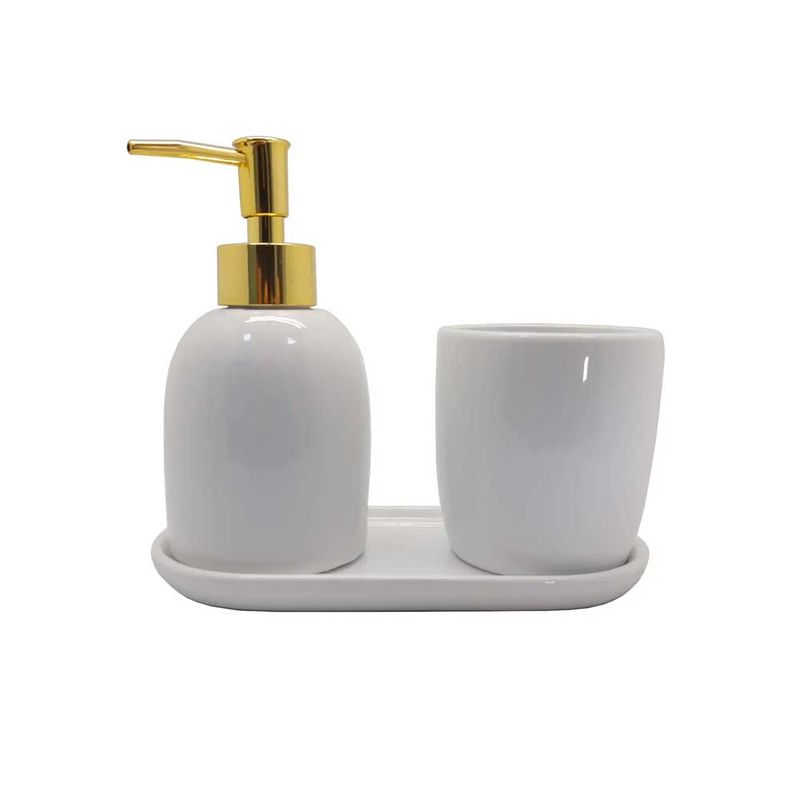 Conjunto Para Banheiro Londres Em Cerâmica Branca e Dourada 3 Peças