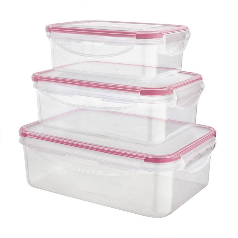 CONJUNTO POTE HERMÉTICO RETANGULAR VERMELHO 3 PEÇAS