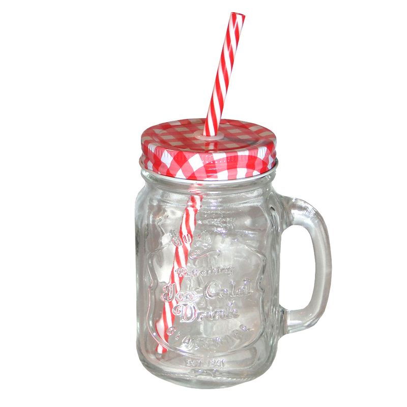 COPO DE VIDRO ICE COLD DRINK COM CANUDO E TAMPA VERMELHA 450ML