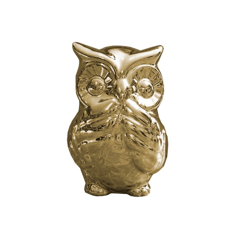CORUJA DECORATIVA DE CERÂMICA DOURADA MUDA