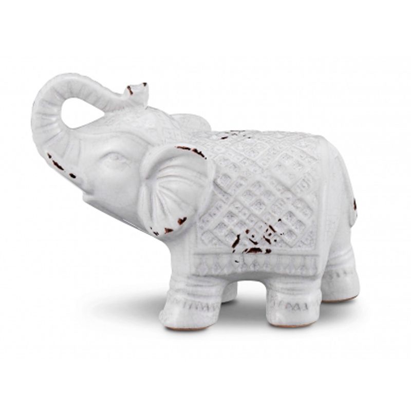 ELEFANTE ANTIQUE BRANCO DE CERÂMICA 16,5X10X12,7CM