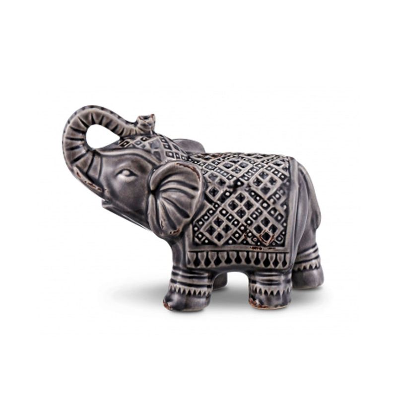 ELEFANTE ANTIQUE CINZA DE CERÂMICA 16,5X10X12,7CM