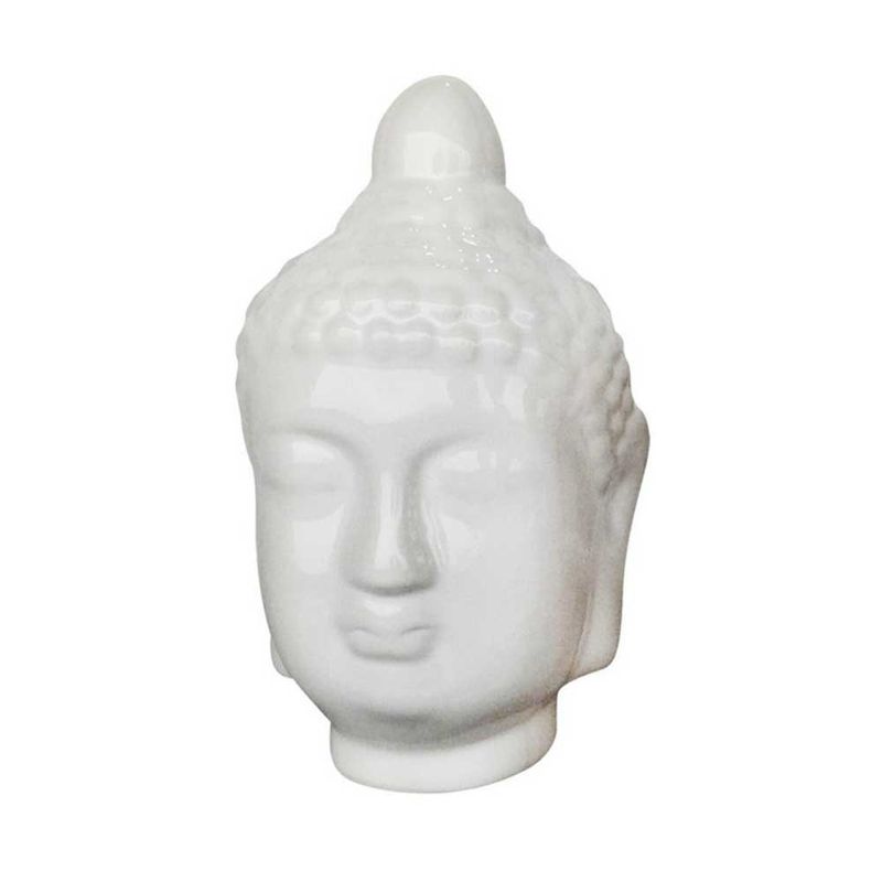 Escultura Decorativa Cerâmica Budha Head Branco