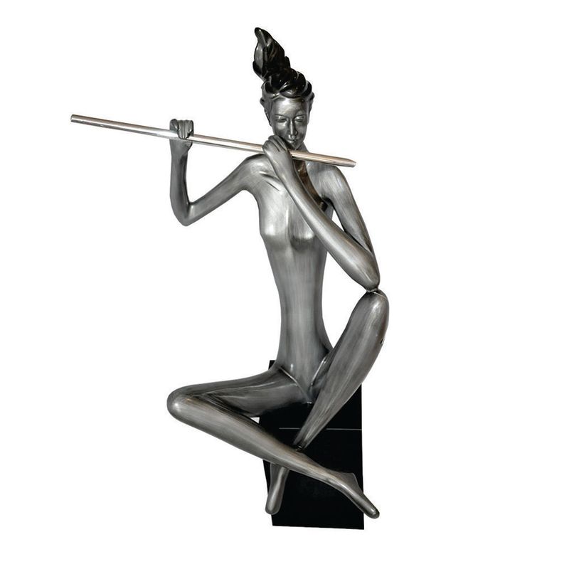 ESCULTURA FLAUTISTA PRATA BASE PRETA
