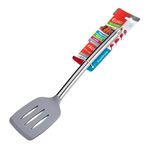 ESPATULA VAZADA DE SILICONE COM CABO INOX CINZA
