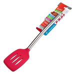 ESPATULA VAZADA DE SILICONE COM CABO INOX VERMELHA
