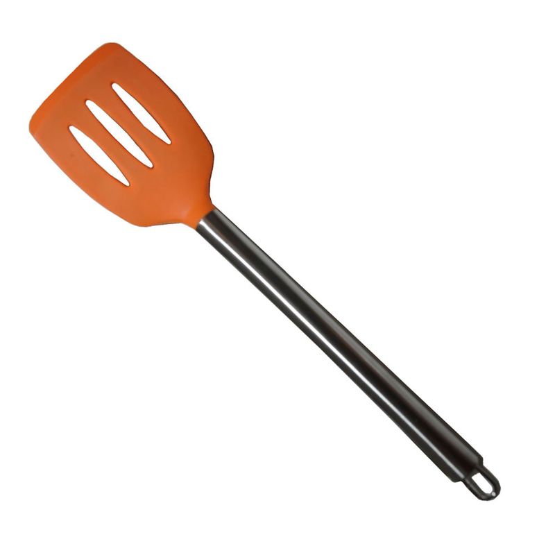 ESPÁTULA VAZADA DE SILICONE LARANJA EMBORRACHADO E INOX