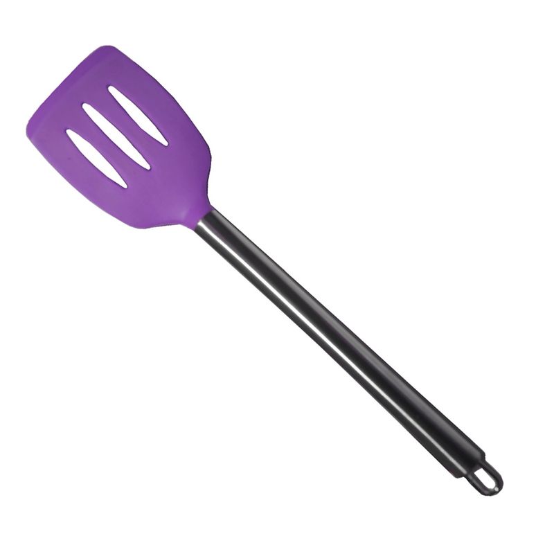 ESPÁTULA VAZADA DE SILICONE ROXO EMBORRACHADO E INOX