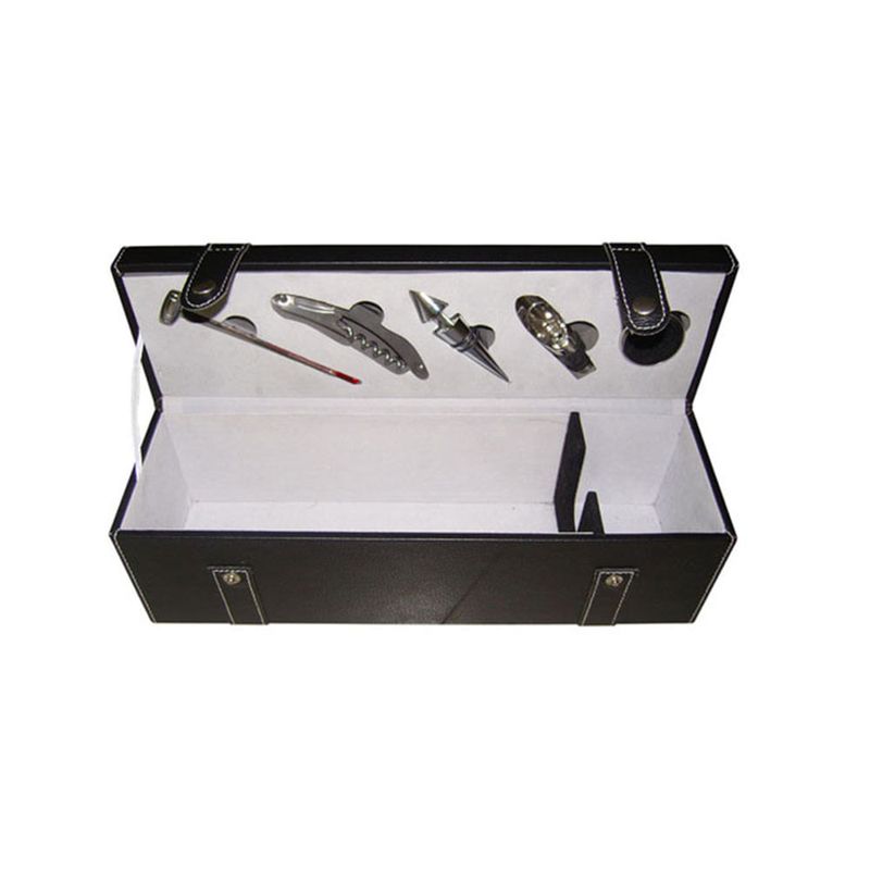 ESTOJO DE COURO PARA 1 GARRAFA DE VINHO COM 5 ACESSÓRIOS