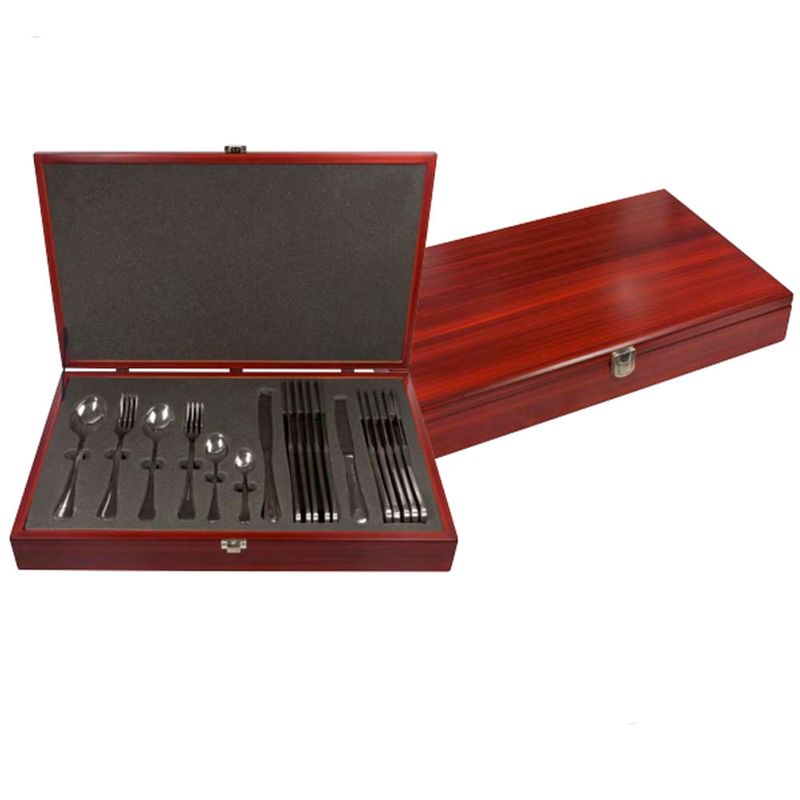 Faqueiro 48 Peças Em Aço Inox Com Caixa De Madeira