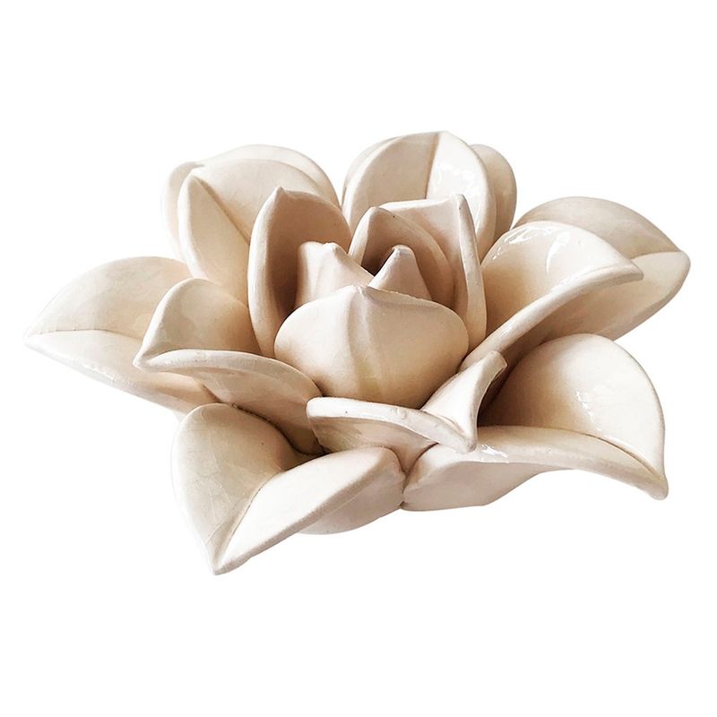 Flor Branca De Cerâmica Decorativa 14x13,5x6cm